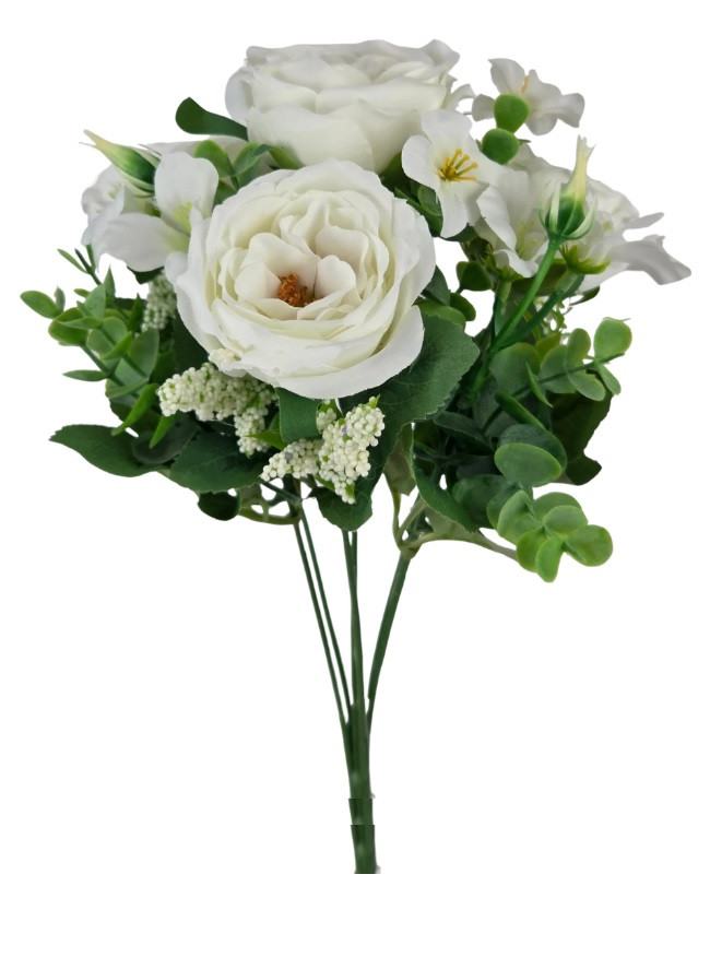 4 fejes rózsa csokor - Fehér - 32 cm