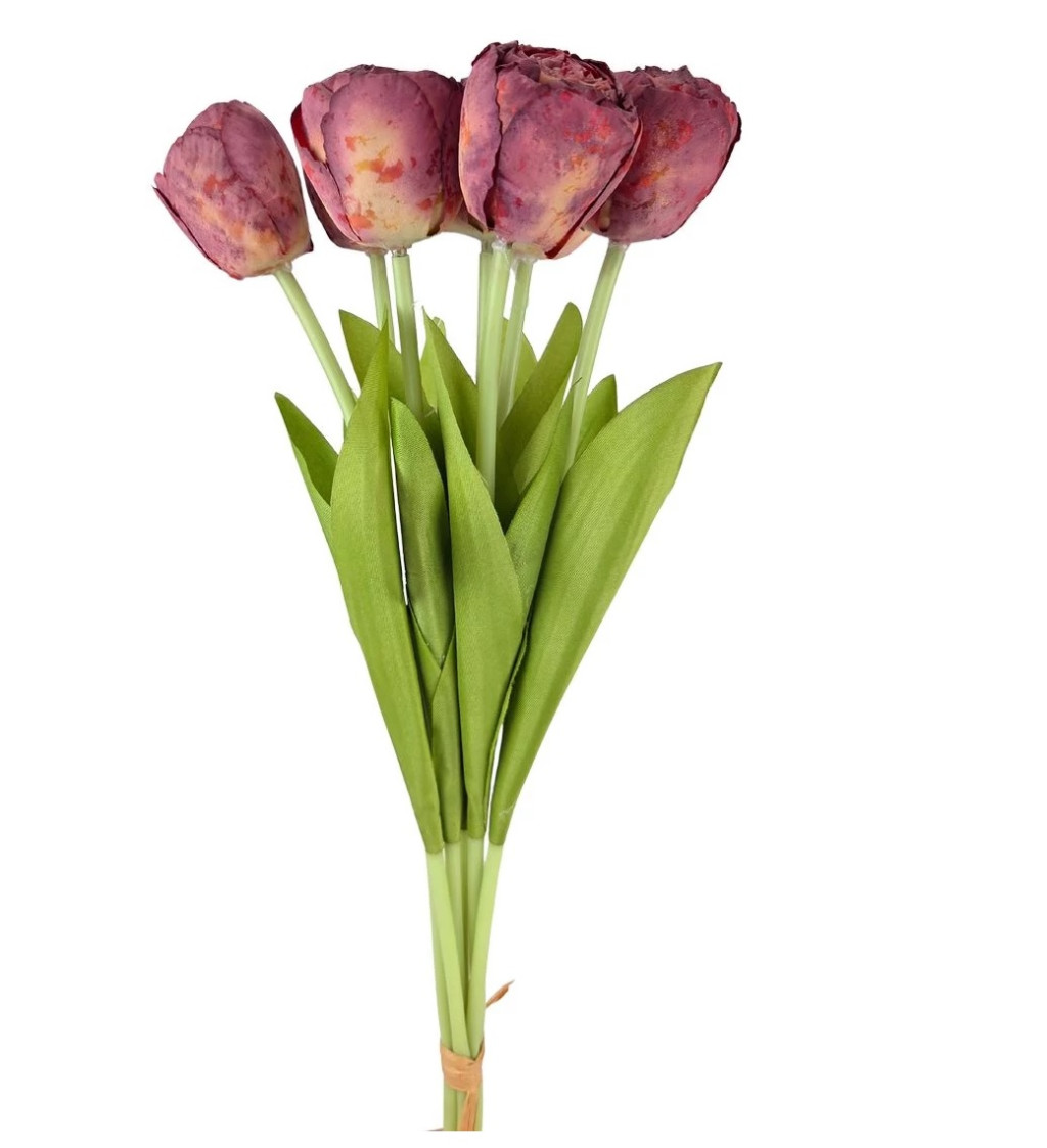 7 szálas szárított hatású tulipán csokor - Bordó - 43 cm