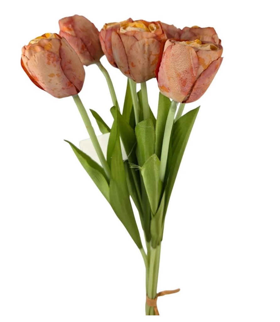 7 szálas szárított hatású tulipán csokor - Narancs - 43 cm