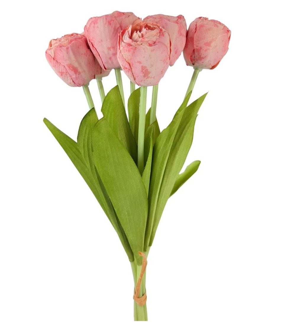 7 szálas szárított hatású tulipán csokor - Rózsaszín - 43 cm