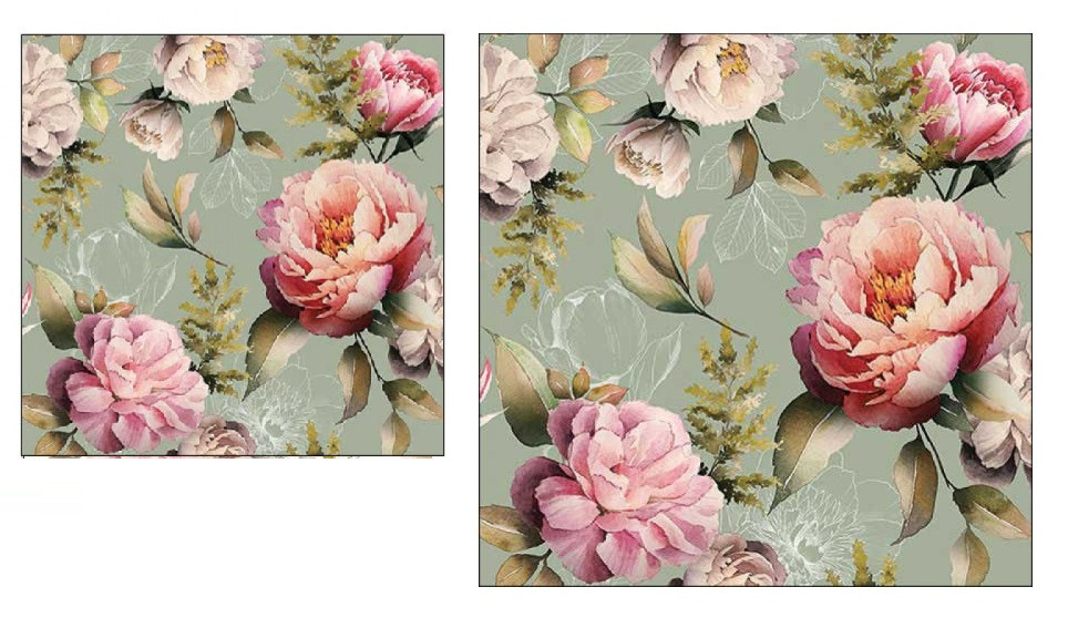 Ambiente papírszalvéta - Peonies composition green - 25x25 cm, 33x33 cm - 20 db/csomag