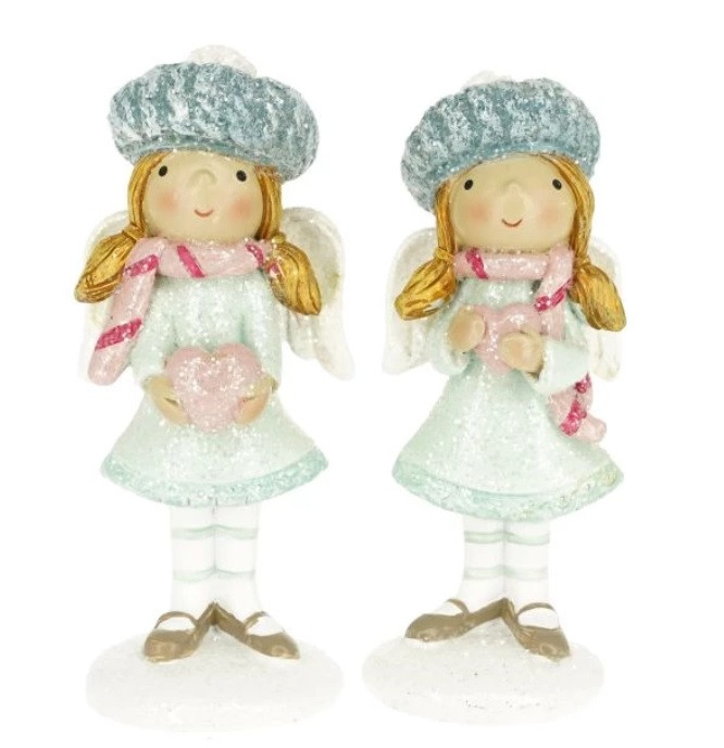 Angyal sapkában, szívvel glitteres - 2 féle - 10x4x3,8 cm