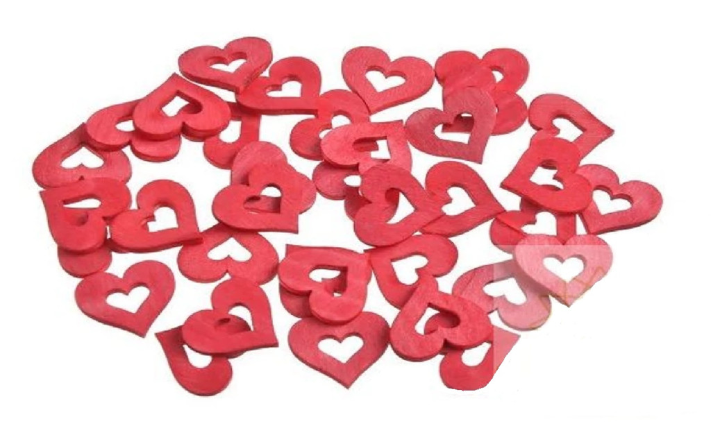 Apró fa dekor szív - Piros - 2 cm - 36 db/csomag