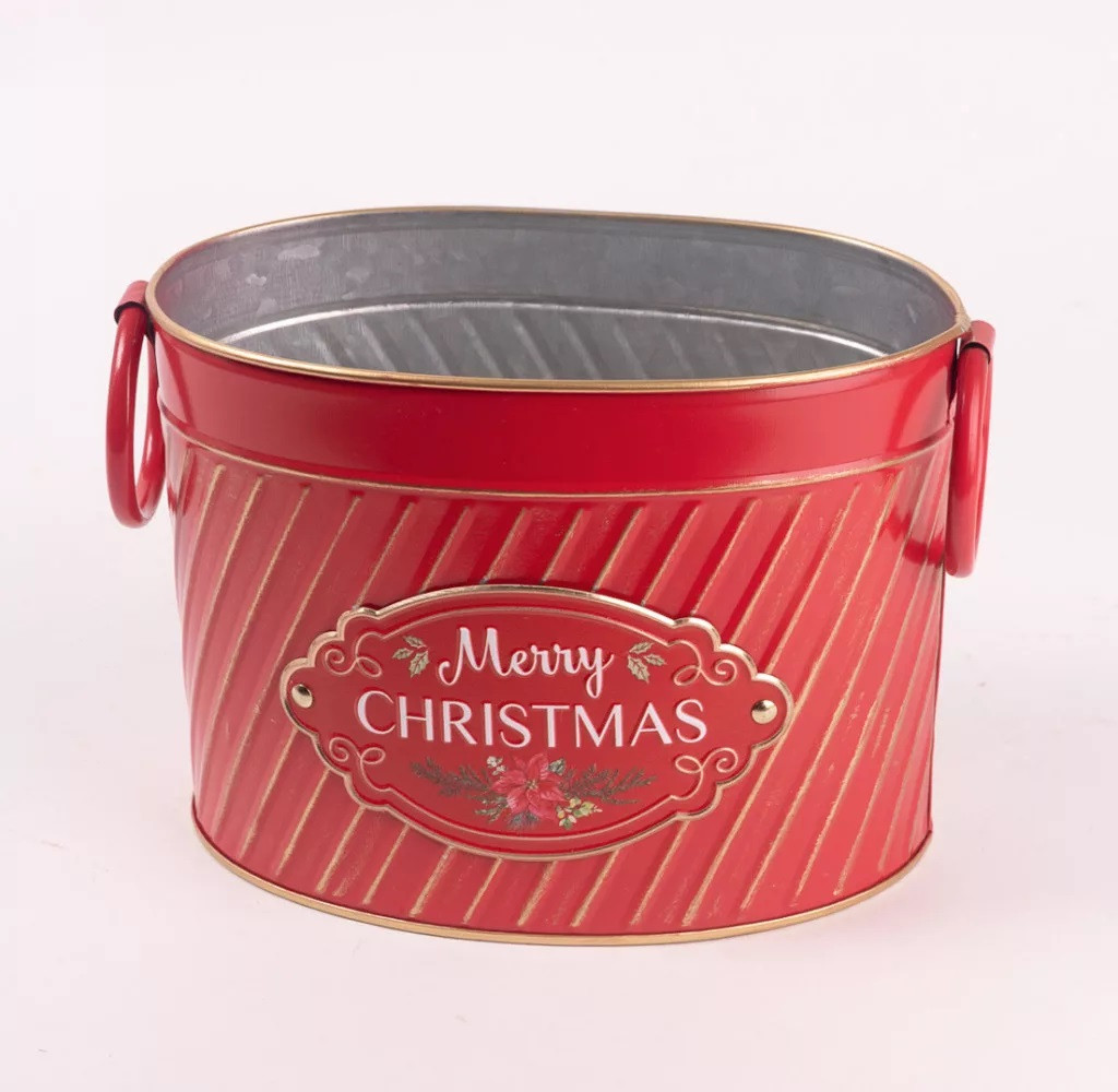 Bádog kaspó - Merry Christmas - Piros - 18,5 cm