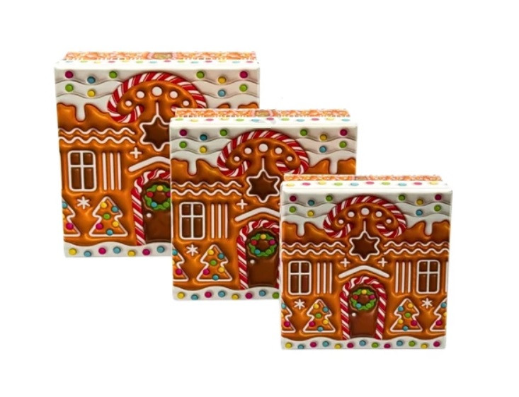 Barna karácsonyi doboz - Mézeskalács - 15 cm, 13 cm, 11 cm - 3 db-os szett