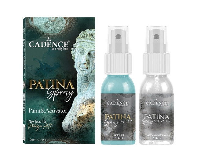 Patina spray szett (50 + 50 ml), amely tartalmazza és a színező folyadékot és az aktivátor folyadékot is.