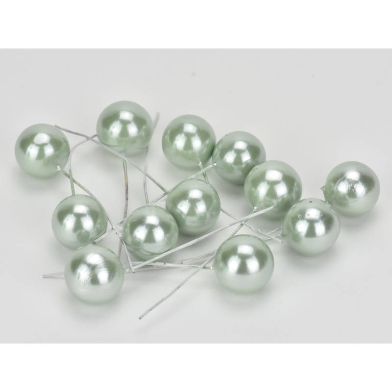 Drótos bogyó gyöngyház - Country zöld - 1,8 cm - 12 db/csomag