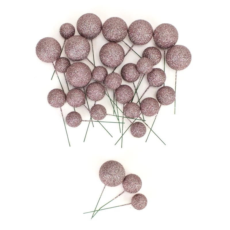 Csillámos gömb pick - Rózsaarany - 30 db/csomag