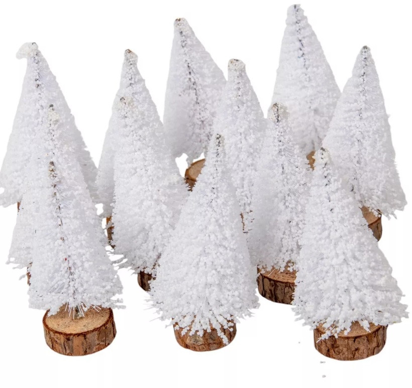 Dekor fenyőfa - Fehér - 10 cm - 12 db/csomag
