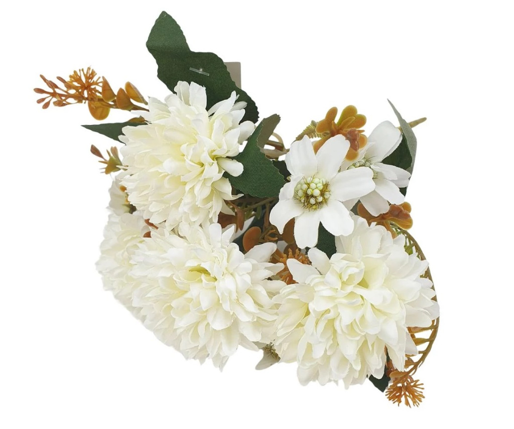 4 fejes krizantém csokor - Tört fehér - 30 cm