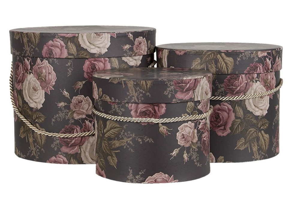 Díszdoboz szett kerek - Fekete-rózsás - 3 db-os szett