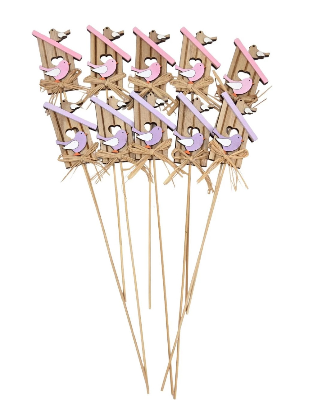 Fa betűző - Csíkozott madárház - 8x4,5cm+24cm szár - 10 db/csomag