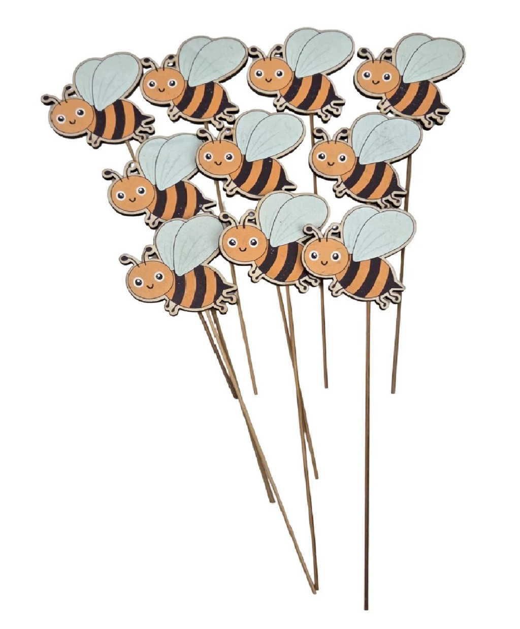 Fa betűző - Méhecske kb.6,5x6,5cm+18,5cm szár - 10 db/csomag