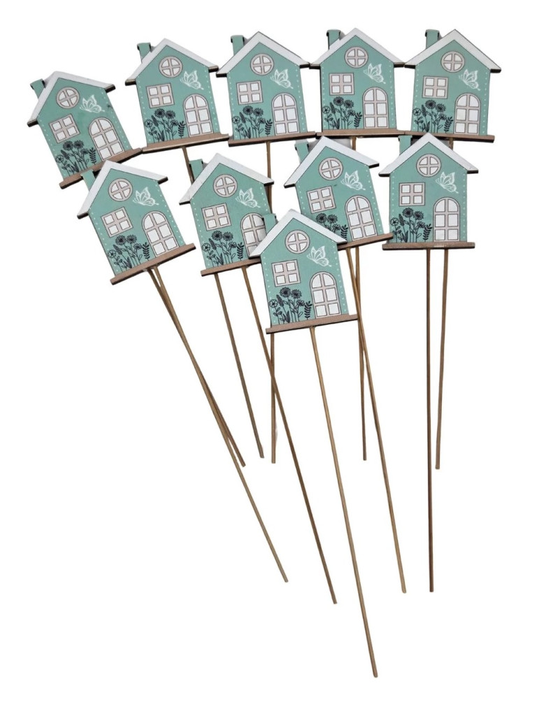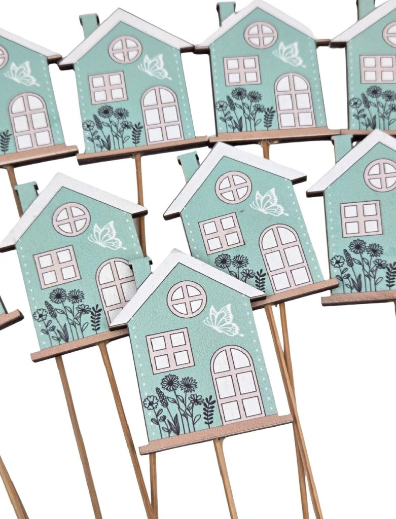 Fa betűző - Menta ház - 7x5,5 cm+19cm szár - 10 db/csomag