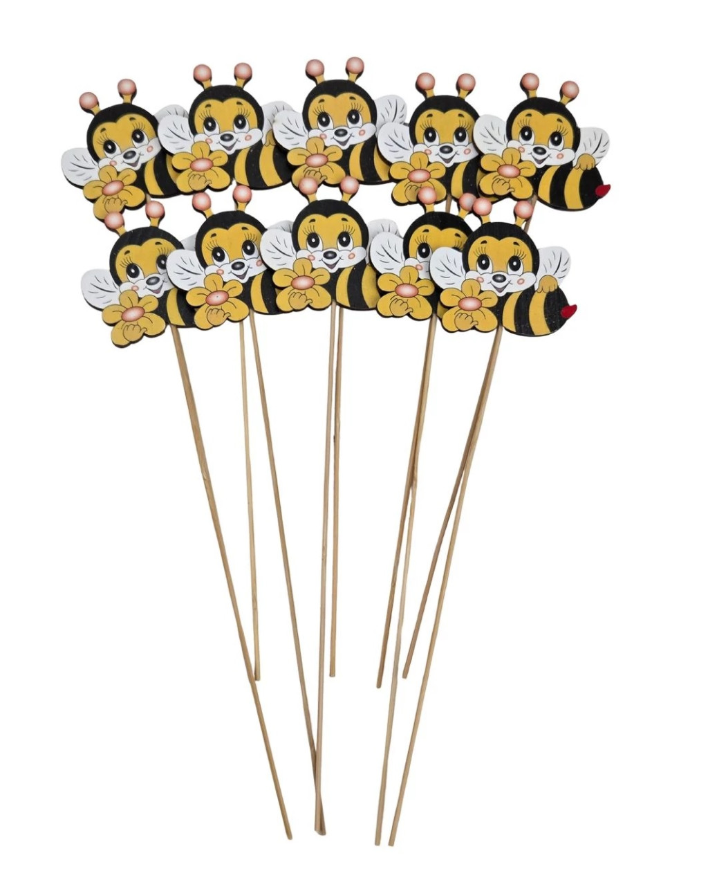 Fa betűző - Mosolygós méhecske - 7x7 cm+24 cm szár - 10 db/csomag