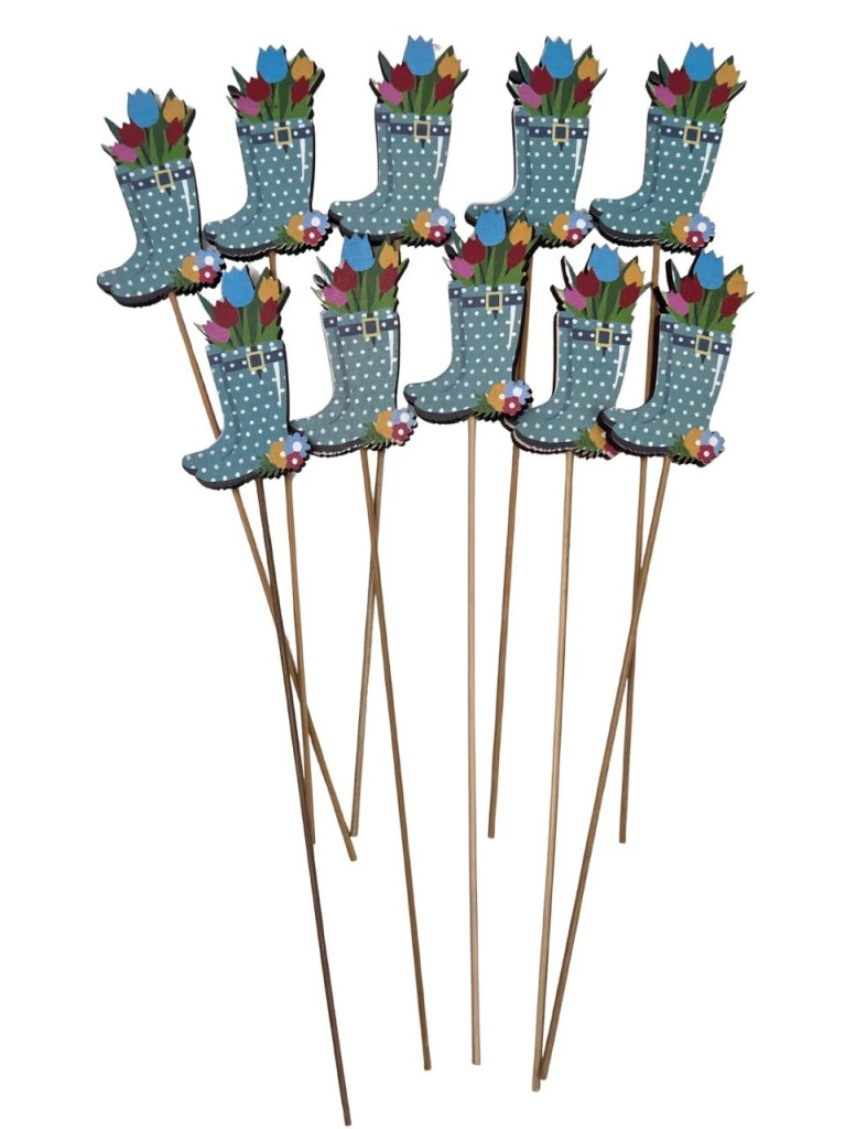 Fa betűző - Pöttyös virágos csizma - 7x4 cm+19 cm szár - 10 db/csomag