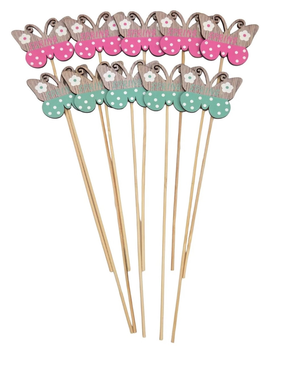 Fa betűző - SPRING lepke - 6,5x5 cm+22 cm szár - 10 db/csomag