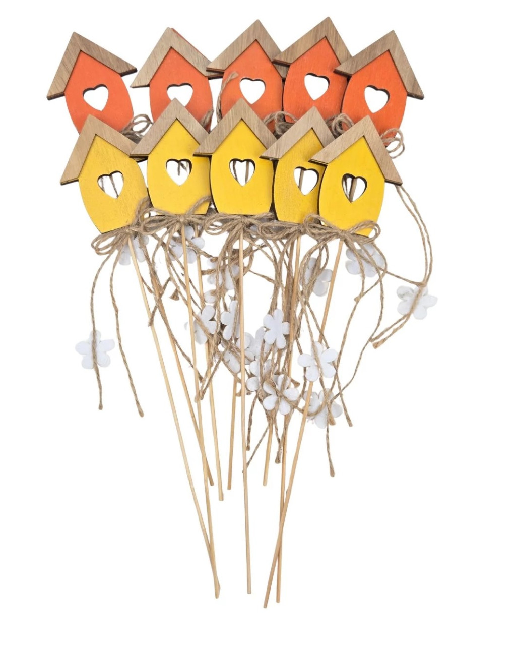 Fa betűző - Szíves faház -.8x6,5 cm+24 cm szár - 10 db/csomag