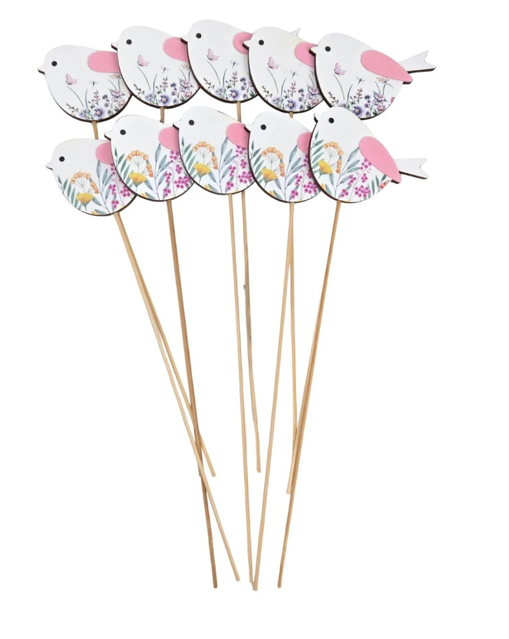 Fa betűző - Virágmintás madár - 8,5x5,5cm+24cm szár - 10 db/csomag
