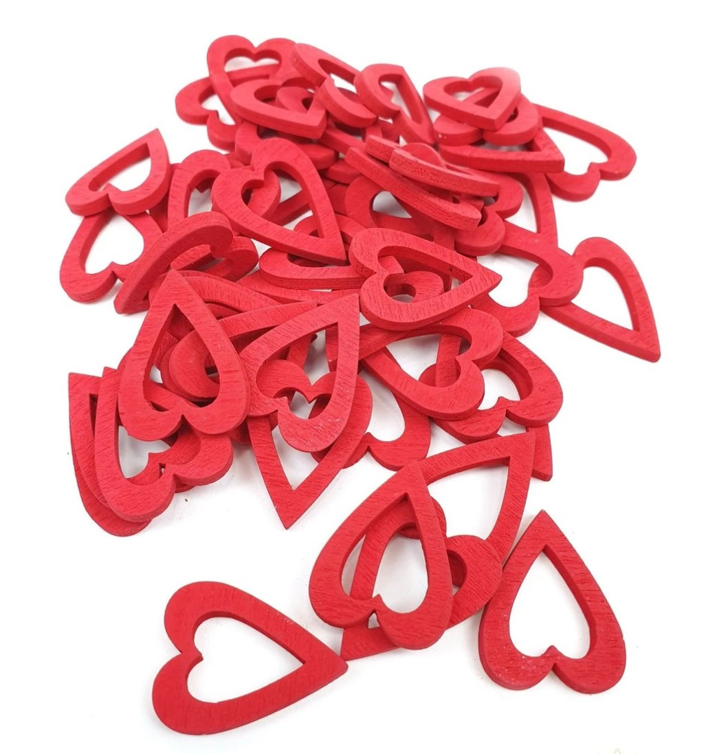 Fa dekor lyukas szív - Piros - 3x2 cm - 50 db/csomag