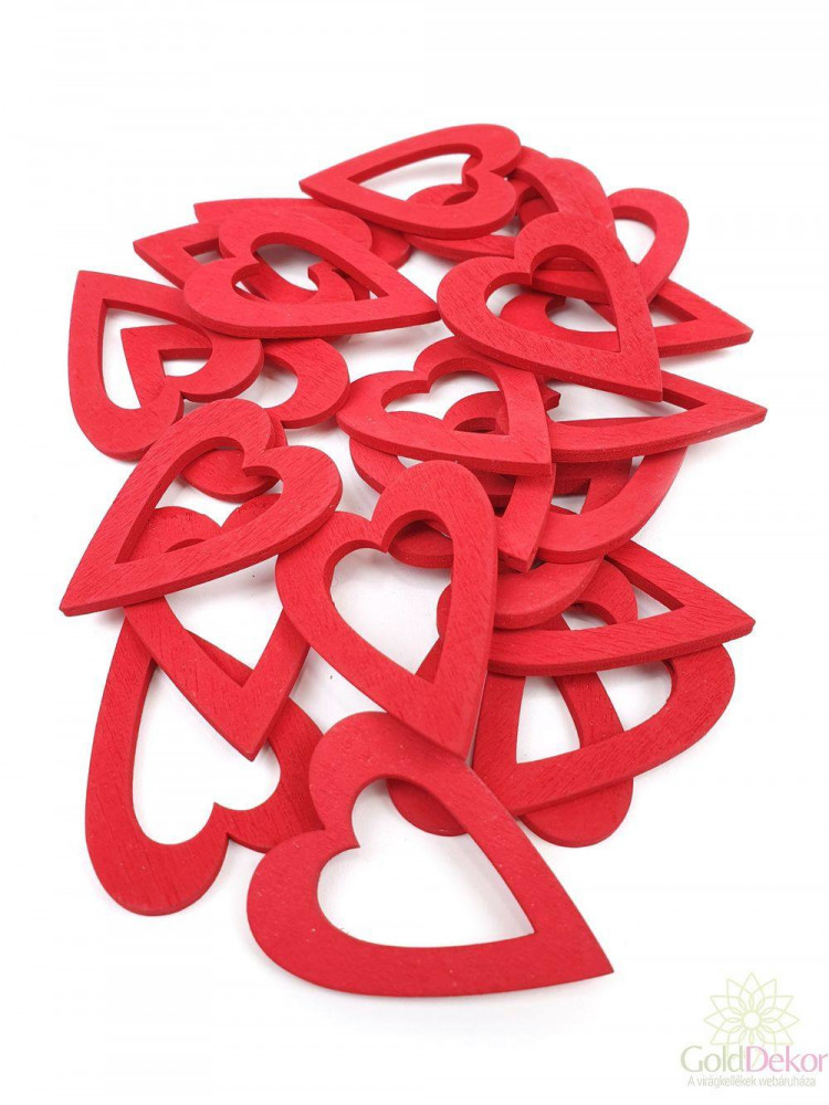 Fa dekor lyukas szív nagy - Piros - - 5x4 cm - 24 db/csomag