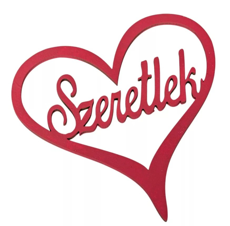 Fa szívben "Szeretlek" felirat - Megypiros - 10 cm