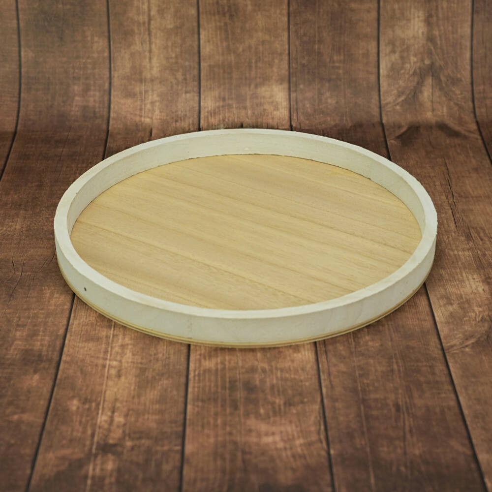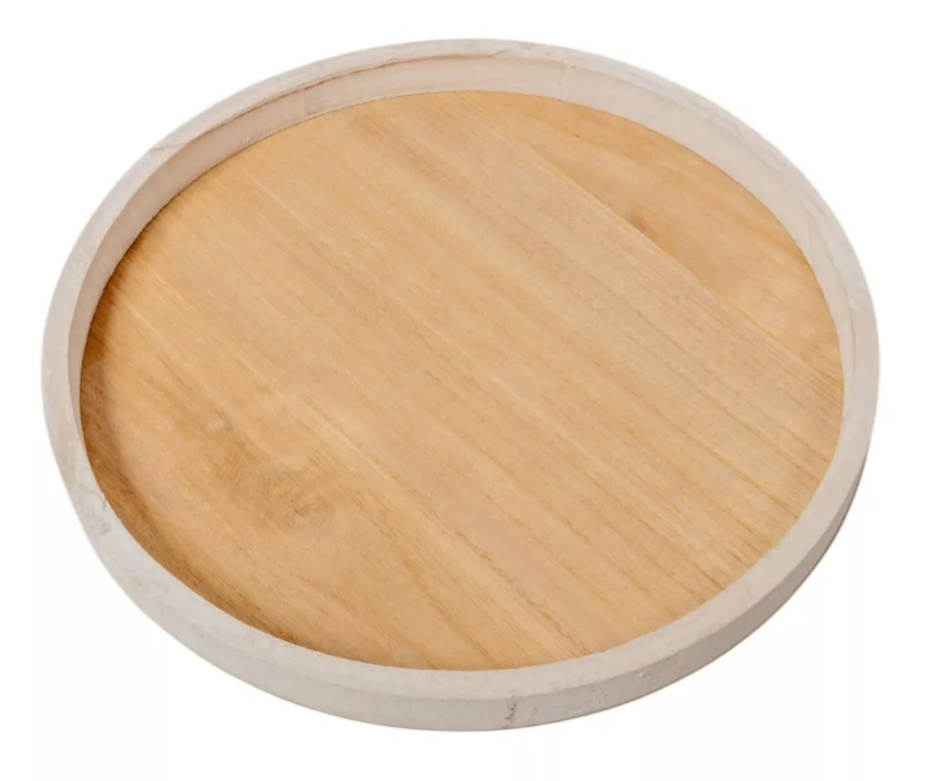 1db fehér kerek dekor tálca, masszív és erős fából.