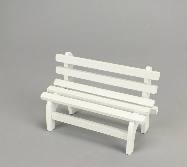 Fehér fa pad, kisebb dekorációk kiegészítője.