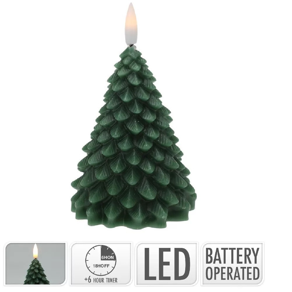 Fenyő gyertya LED-es időzítős elemes - Zöld - 11 cm