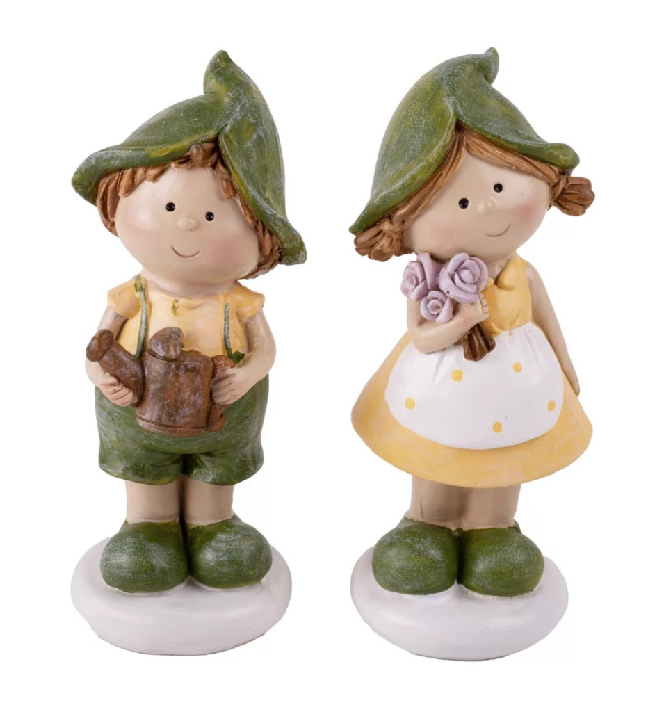 Fiú-lány figura - locolóval, virággal - 11,5 cm