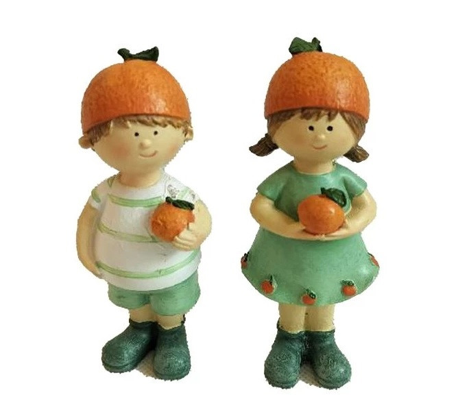 Fiú, lány narancssapkában, álló - 4x3x10 cm
