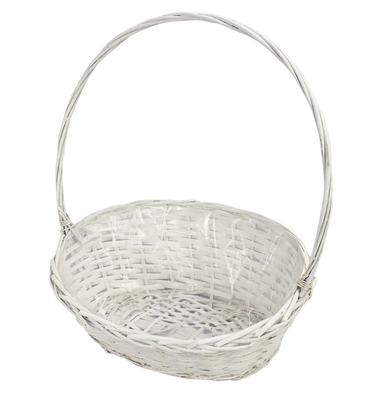 Fehér fonott csemege kosár 50cm méretben nagy, mutatós és sokoldalúan felhasználható.