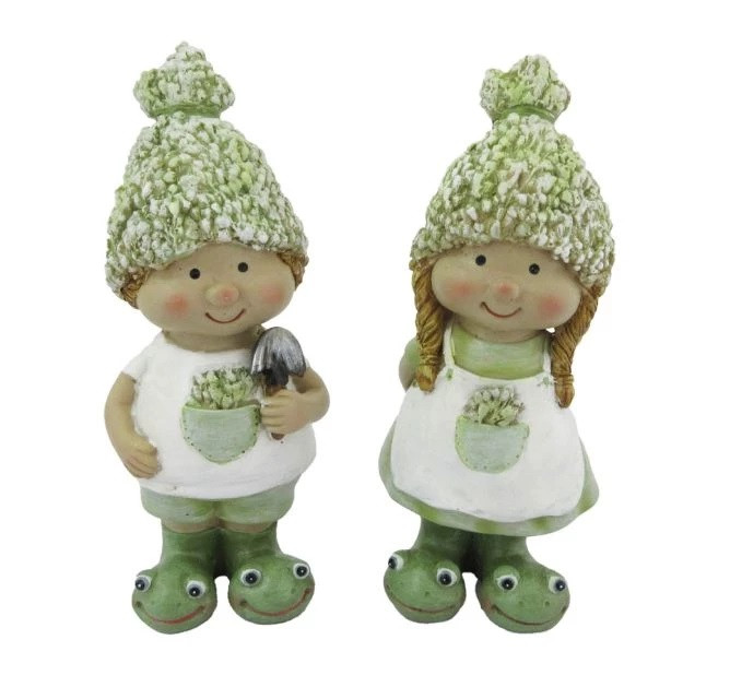 Gyerek fiú, lány , békacsizmában, ásóval álló - 4,5x4x12 cm