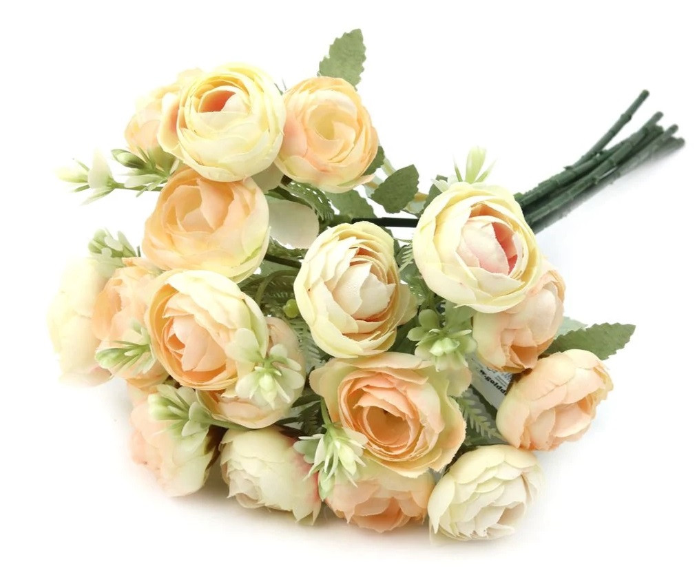 Hamvaslevelű dekor boglárka csokor - Krém-barack - 32 cm