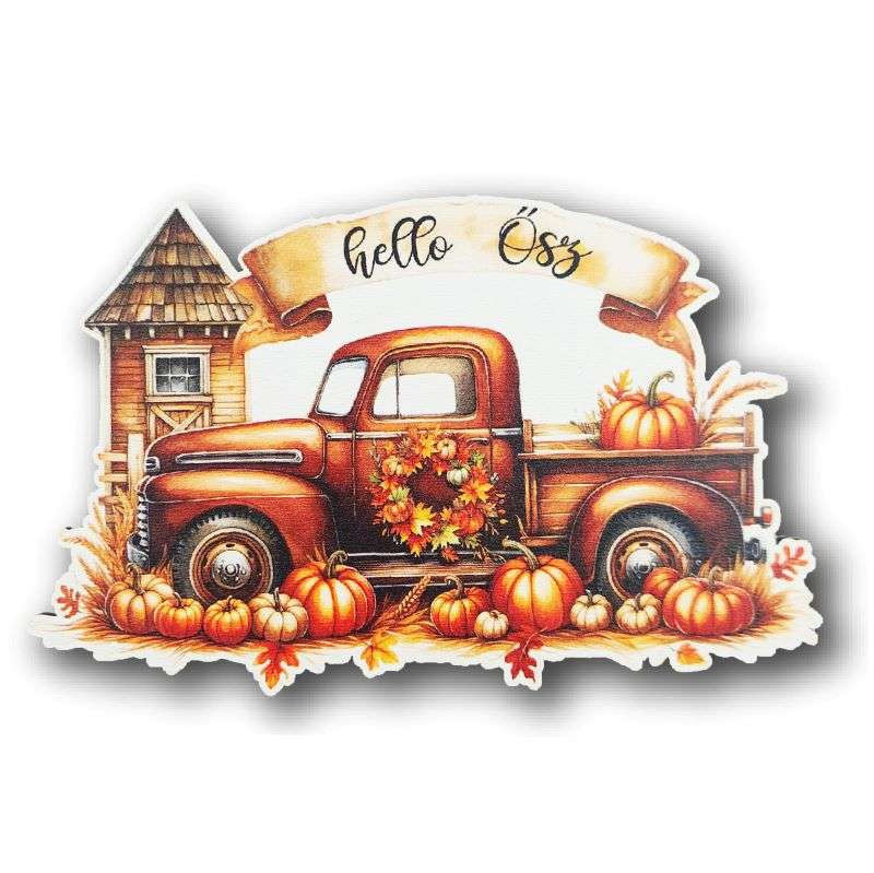 Hello ősz - Tökös autó - 14x9 cm
