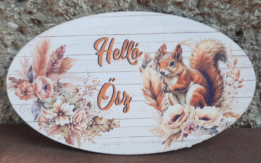 Hello ősz fatábla - Mókus - 15,5x9,5 cm