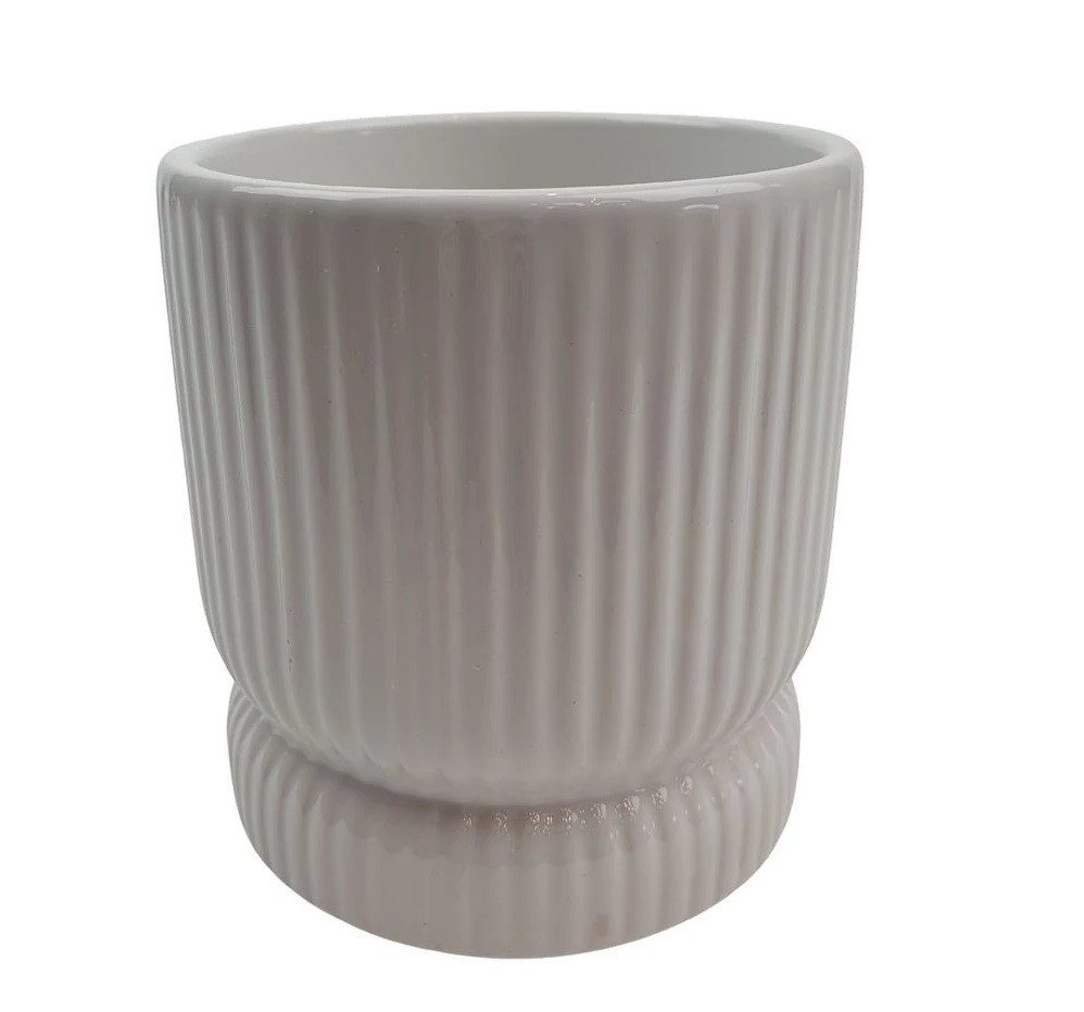 Hosszanti csíkos kaspó - Fehér - 10x10x11 cm