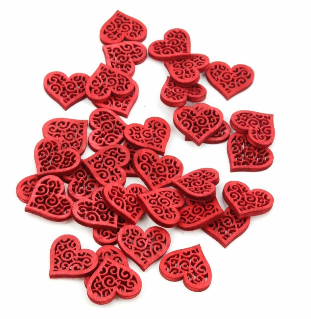 Inda mintás fa szív kicsi - Piros - 2x2 cm - 36 db/csomag