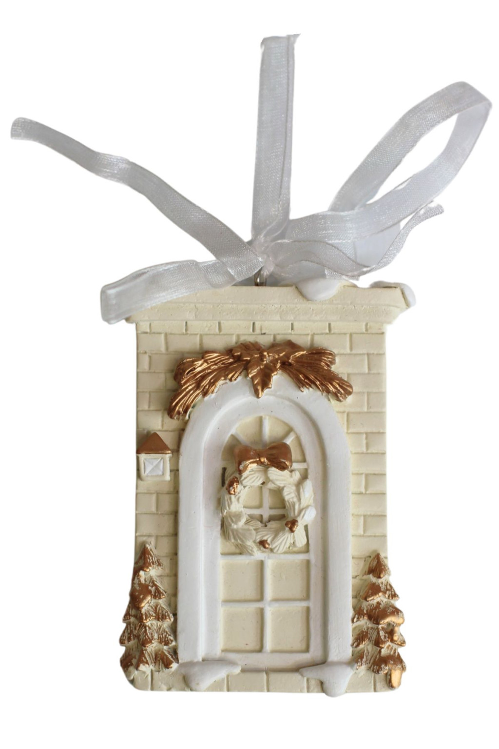 Karácsonyfadísz - Fehér-arany ajtó - 8 cm