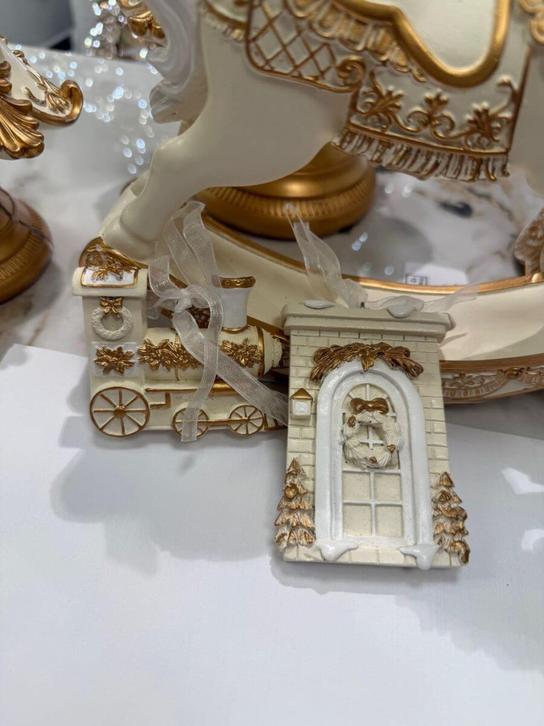 A luxus krém-arany karácsonyi kollekció részletes dekorációja szintén alkalmas ajándékként.