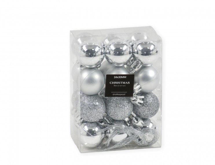 Karácsonyi gömb - Ezüst - 3 cm - 24 db/csomag
