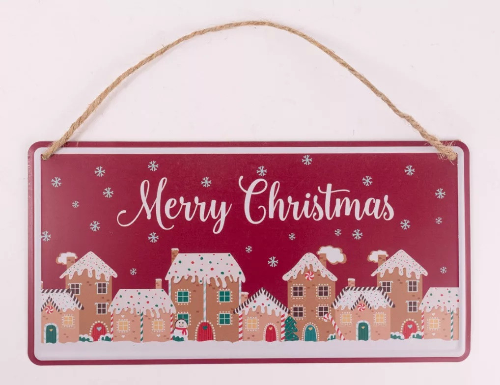 Karácsonyi bádog tábla - Házak - 30x15 cm