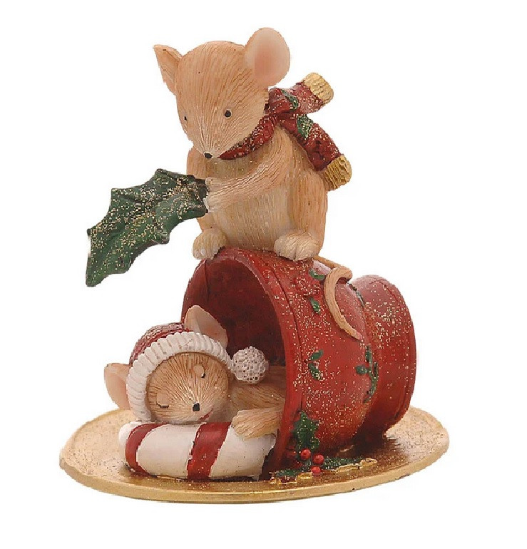 Karácsonyi egérkék csészében - 11 cm - Raktáron