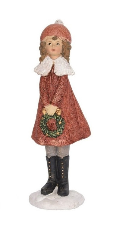 Karácsonyi lány figura koszorúval -14,5 cm - Raktáron