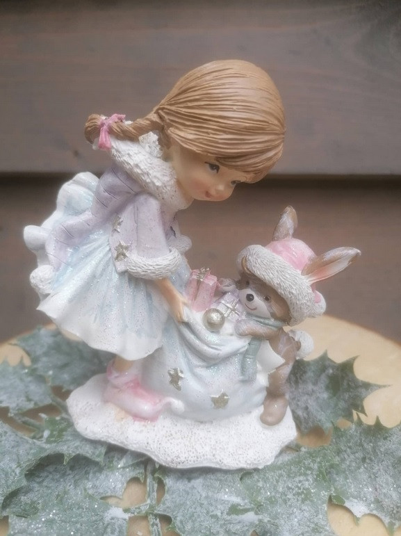 Karácsonyi kislány nyuszival - 11 cm - Raktáron