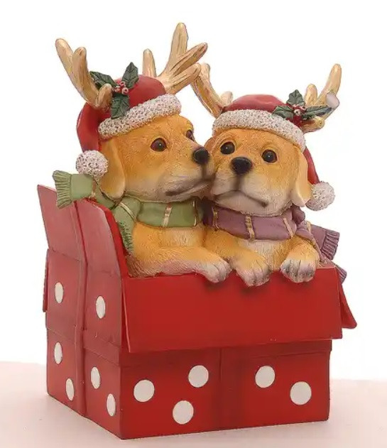 Karácsonyi kutyusok dobozban - 24,5 cm - Raktáron