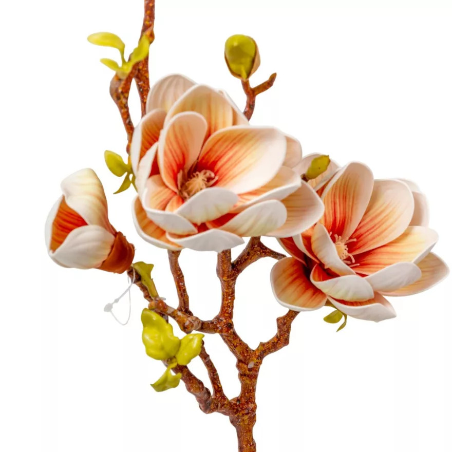 Magnólia ág polifoam - 3 virágos - Fehér-barack - 78 cm