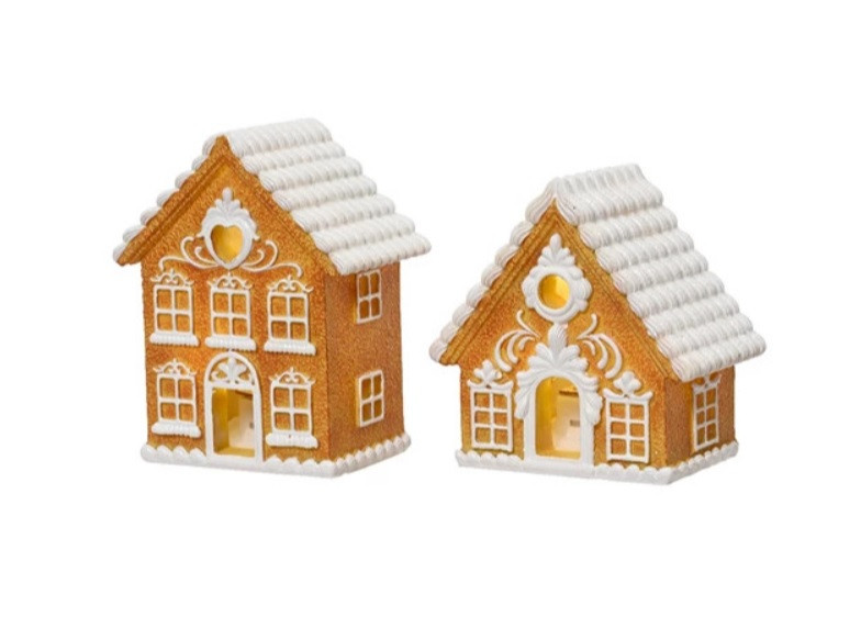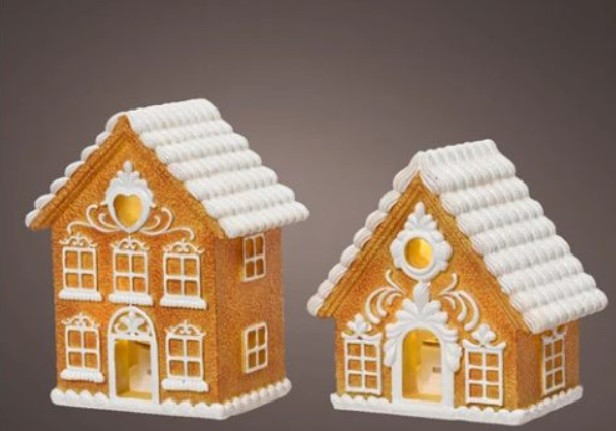 Mézeskalács karácsonyi dekoráció ledes - Ház - 8,5x8,5 cm