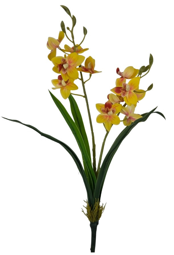 Mini orchidea levéllel - Sárga - 40 cm