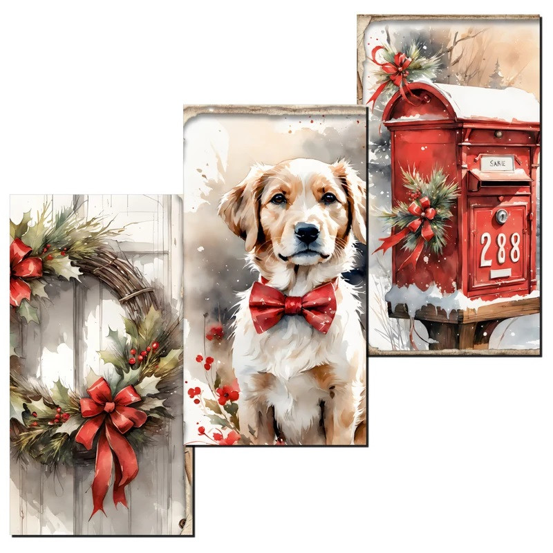 Nyomtatott dekorkarton - Karácsonyi piros táblák - 3 db/csomag